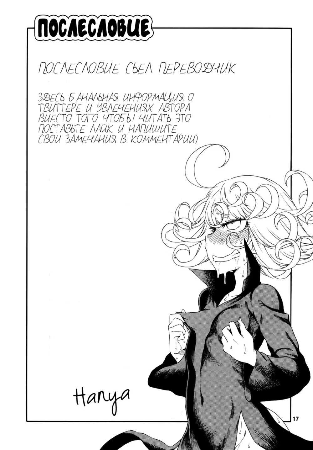 Уровень бедствия Торнадо (Saigai Level: Tatsumaki | Disaster Level: Tornado) Смотреть видео трейлер Уровень бедствия Торнадо (Saigai Level: Tatsumaki | Disaster Level: Tornado) 19 756 19 Авг 2021 в 8:06 +11 0 Поделиться Переводчики: artkll Автор: hanya Категории: lolconмастурбациятентаклиahegaomind break Теги: one punch man Комментарии 0 Добавить Отправить Комментариев еще нет. Вы можете стать первым Похожие комиксы How Old Are You Really (А сколько тебе на самом деле лет?) 14 лет назад 00 957 16 Hazard Level 13 лет назад 00 50 27 Allargando - часть 5 (Level C) 12 лет назад 00 90 22 Christmas no Sainan (Christmas Disaster) 12 лет назад 00 70 22 Allargando - часть 6 (Level C-Minus) 11 лет назад 00 76 27 Kotatsu Entropy (Что может случиться под котацу) 10 лет назад +44 568 17 Проникновение в душу - часть 3 (Tamashii INSERT LEVEL 3 Afterschool Tour of the Female body) 10 лет назад 00 114 18 Проникновение в душу - часть 2 (Tamashii INSERT LEVEL 2 Virginity Thief) 10 лет назад 00 87 18 Проникновение в душу - часть 1 (Tamashii INSERT LEVEL 1 Tutorial) 10 лет назад 00 138 16 Смущение Уровня А - глава 2 (Confusion LEVEL A ch 2) 9 лет назад 00 43 37